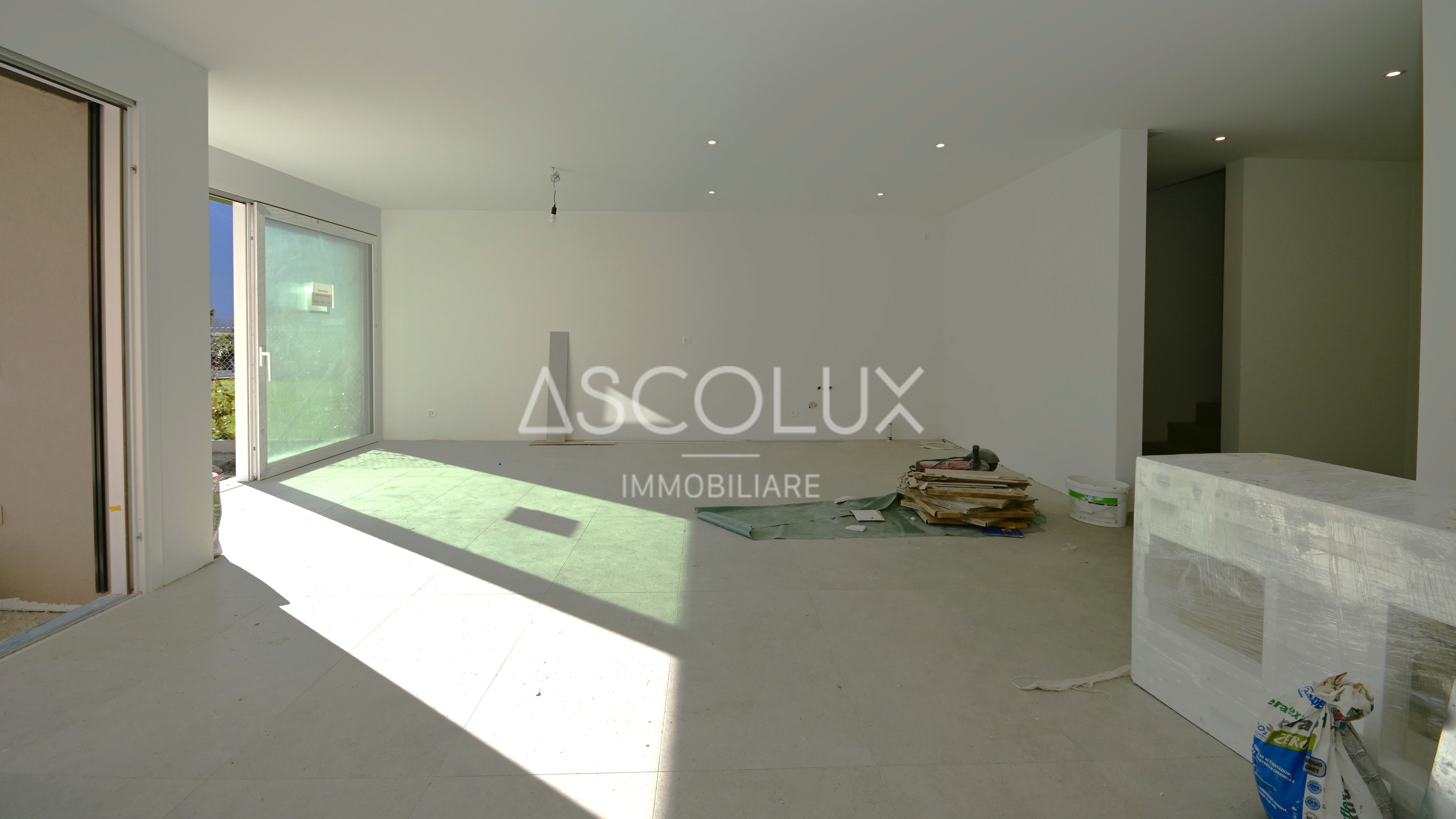 Al piano terreno troviamo un accogliente e pratico atrio d’entrata con un servizio ospiti, il quale accede alla zona giorno. Questo ampio locale dispone di una cucina aperta, una zona da pranzo e la zona soggiorno, il tutto con comodo accesso alla terrazza esterna coperta ed il giardino.